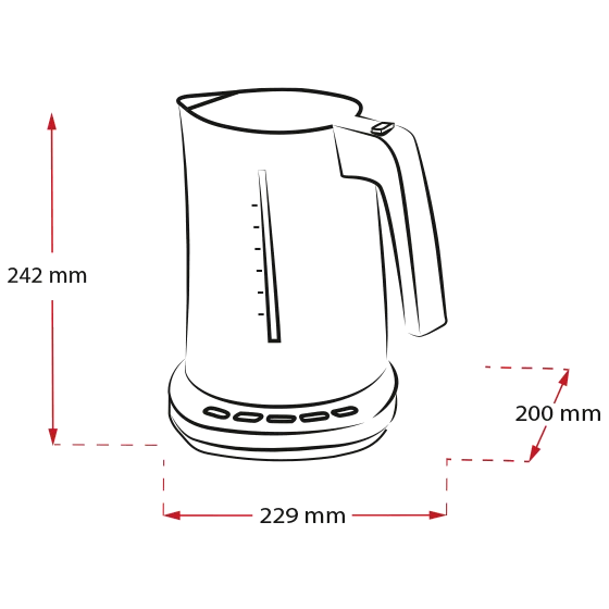 Kraftvolle 2.000 bis 2.400 Watt sorgen für eine schnelle Wassererhitzung. Und wenn du mal etwas mehr heißes Wasser benötigst, bietet dir der Wasserkocher dank 1,7 Liter Fassungsvermögen eine gute Reserve.